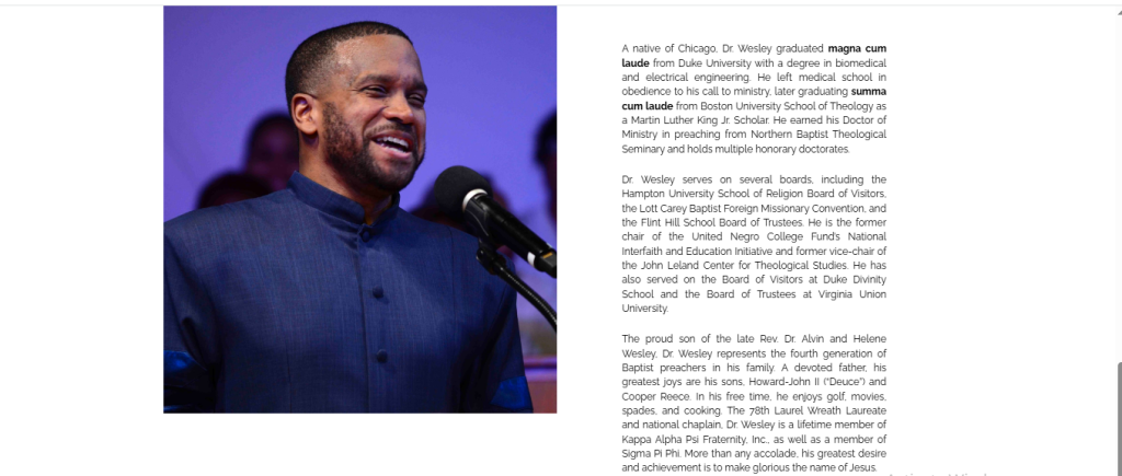 Howard John Wesley is a respected American pastor, theologian, and community leader best known as the Senior Pastor of the Alfred Street Baptist Church in Alexandria, Virginia. Renowned for his powerful sermons, strong leadership, and dedication to social justice, Wesley has become one of the most influential voices in contemporary Christianity.